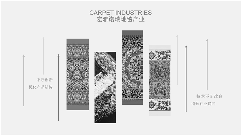 宏雅諾瑞地毯產業品牌多年來依據國際潮流的先進設計、管理理念,結合世界各民族的文化、生活習俗,所生產的地毯堪稱精品,選料十分考究做工精細,以現代流行圖案設計,時尚配色結合先進的地毯制造工藝,竭誠為客戶提供最高質量的地毯產品,發展中的宏雅地毯品牌前景廣闊。